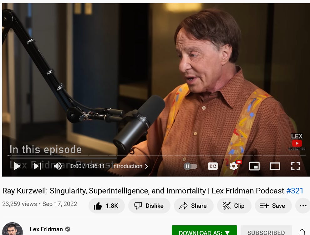 “Ray Kurzweil: Singularity, Superintelligence, and Immortality | Lex Fridman Podcast #321”