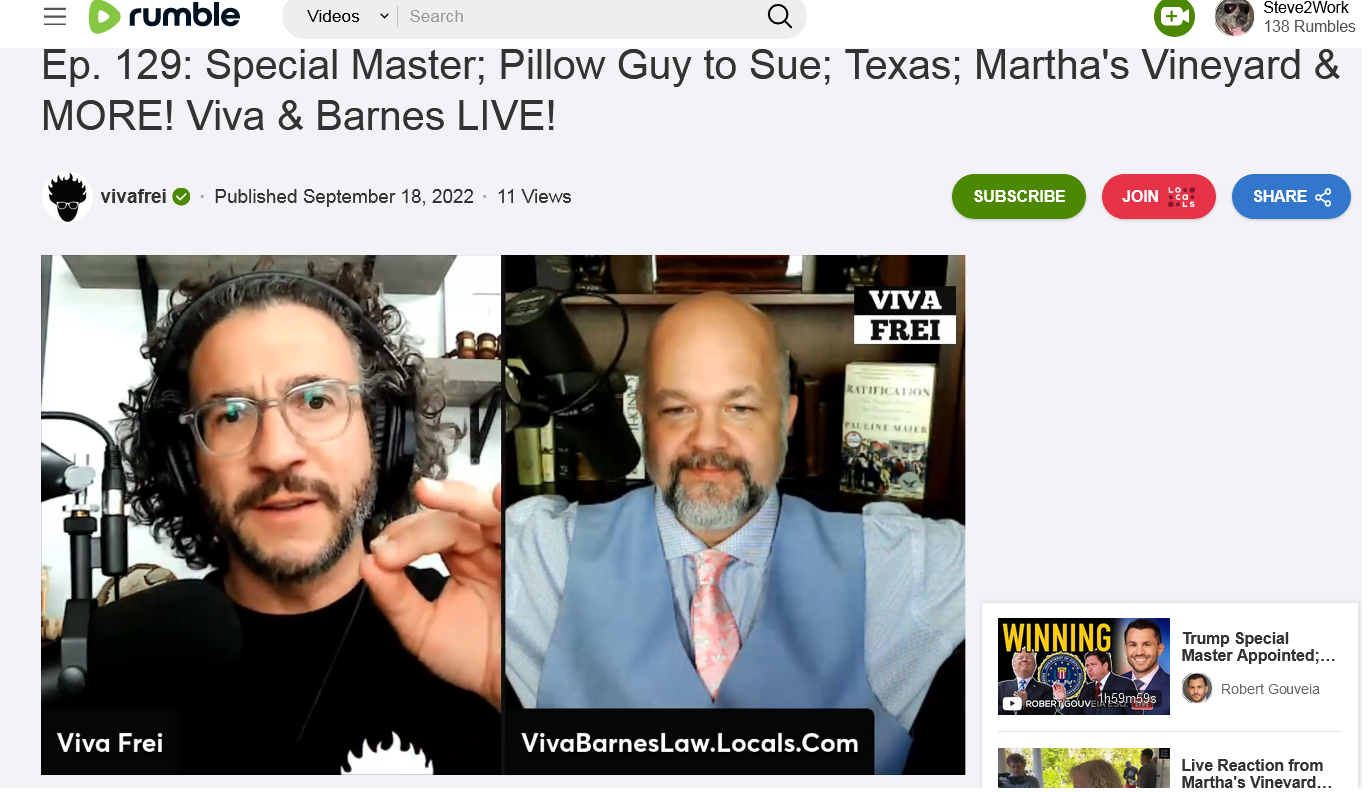 “Ep. 129: Special Master; Pillow Guy to Sue; Texas; Martha's Vineyard & MORE! Viva & Barnes LIVE!”