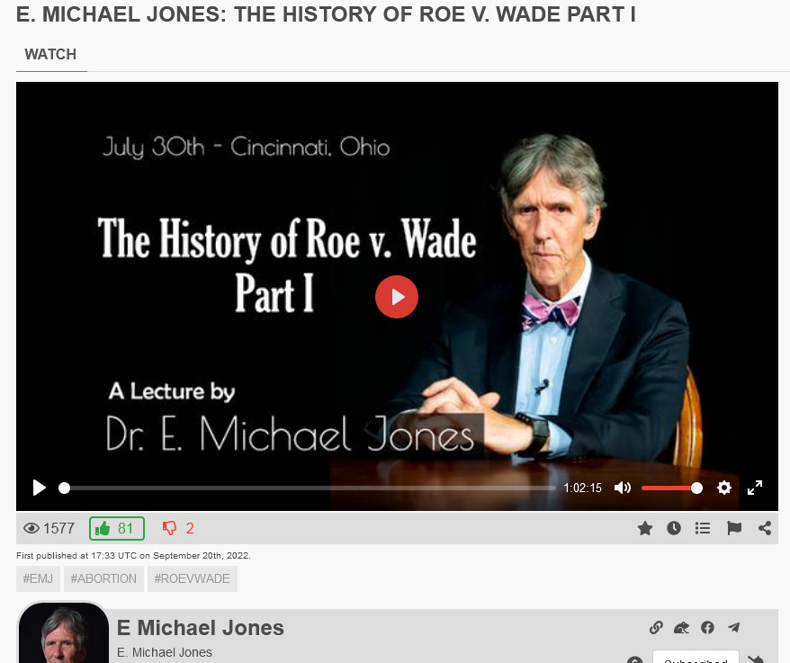 “E. Michael Jones: The History of Roe v. Wade Part I”