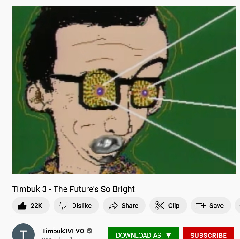 DropBox: https://www.dropbox.com/s/dw05msip65lldr7/Timbuk%203%20-%20The%20Future-s%20So%20Bright.mp4