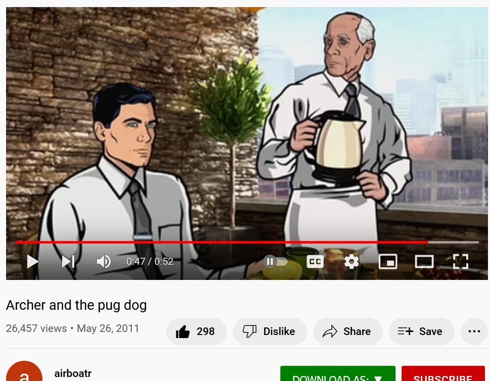 DropBox: https://www.dropbox.com/s/1kih4q7sh7ffopw/Archer%20and%20the%20pug%20dog.mp4