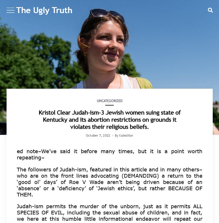 “Kristol Clear Judah-ism–3 Jewish women suing state of Kentucky and its abortion restrictions on grounds it violates their religious beliefs.”