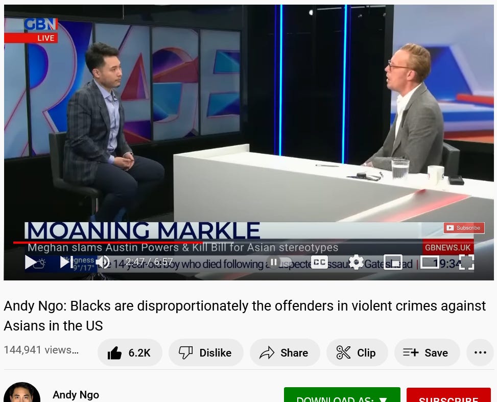 “Andy Ngo: Blacks are disproportionately the offenders in violent crimes against Asians in the US”