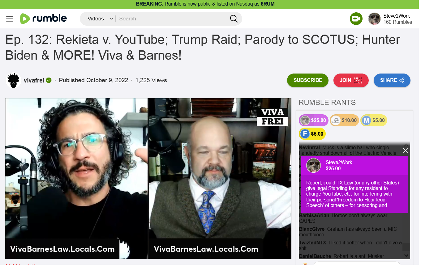 “Ep. 132: Rekieta v. YouTube; Trump Raid; Parody to SCOTUS; Hunter Biden & MORE! Viva & Barnes!”