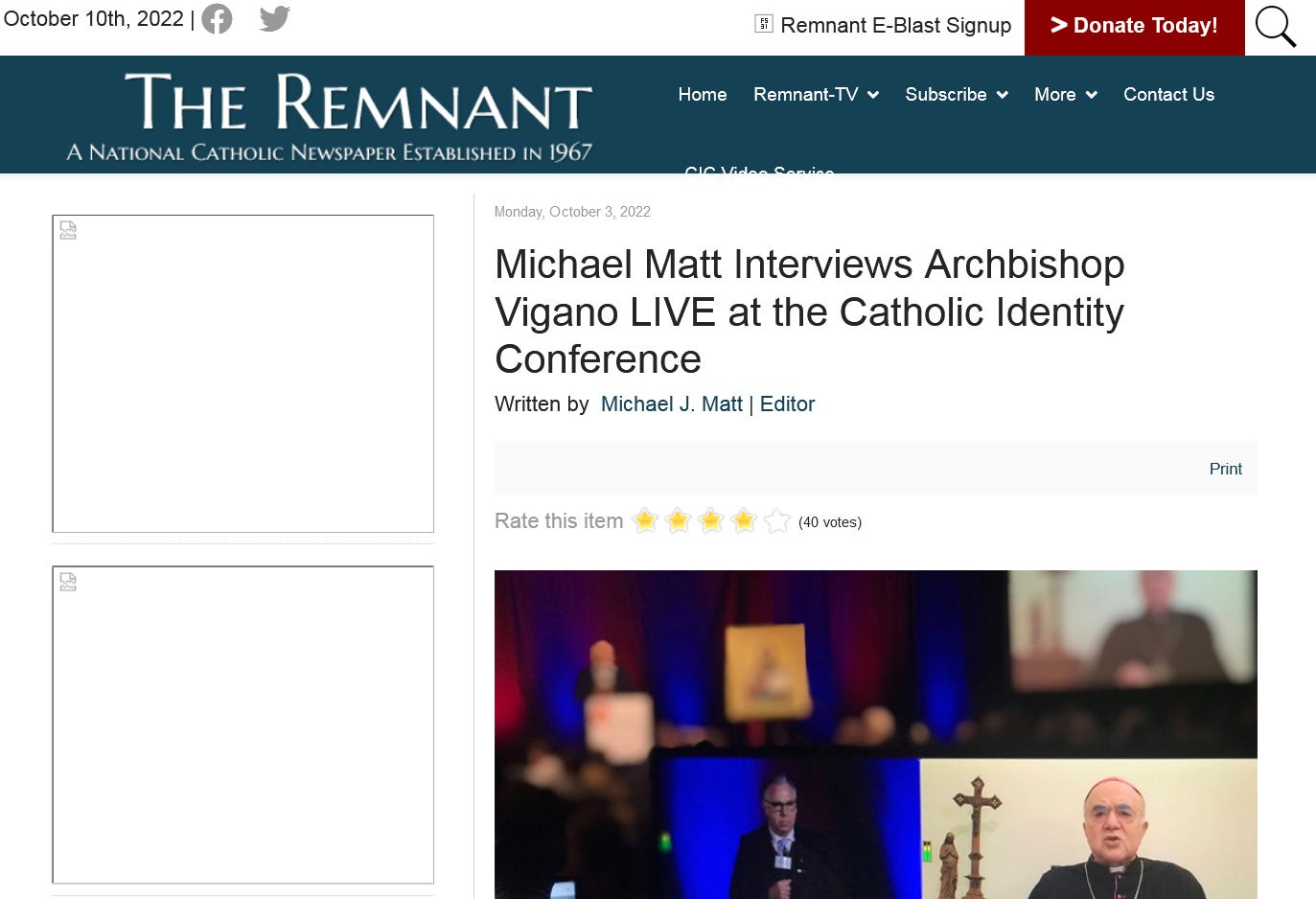 “Michael Matt Interviews Archbishop Vigano LIVE at the Catholic Identity Conference”