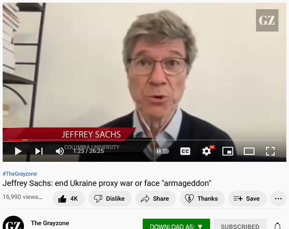 “Jeffrey Sachs: end Ukraine proxy war or face "armageddon"”