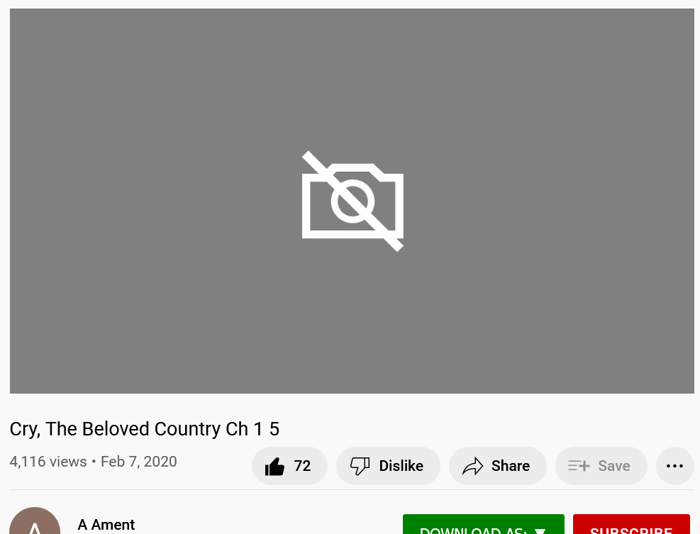 About my reference, 'Cry, [my] beloved Country, Cry!', ..