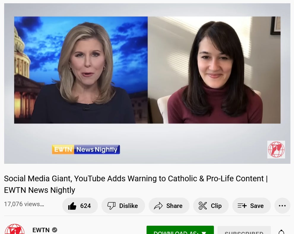“Social Media Giant, YouTube Adds Warning to Catholic & Pro-Life Content | EWTN News Nightly”