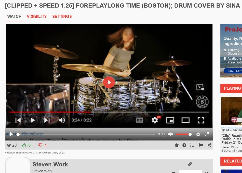“[clipped + Speed 1.25] ForeplayLong Time (Boston); drum cover by Sina”