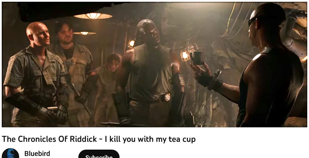 “The Chronicles Of Riddick - I kill you with my tea cup”