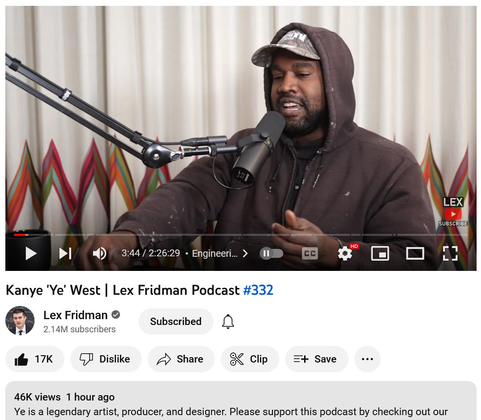 “Kanye 'Ye' West | Lex Fridman Podcast #332”