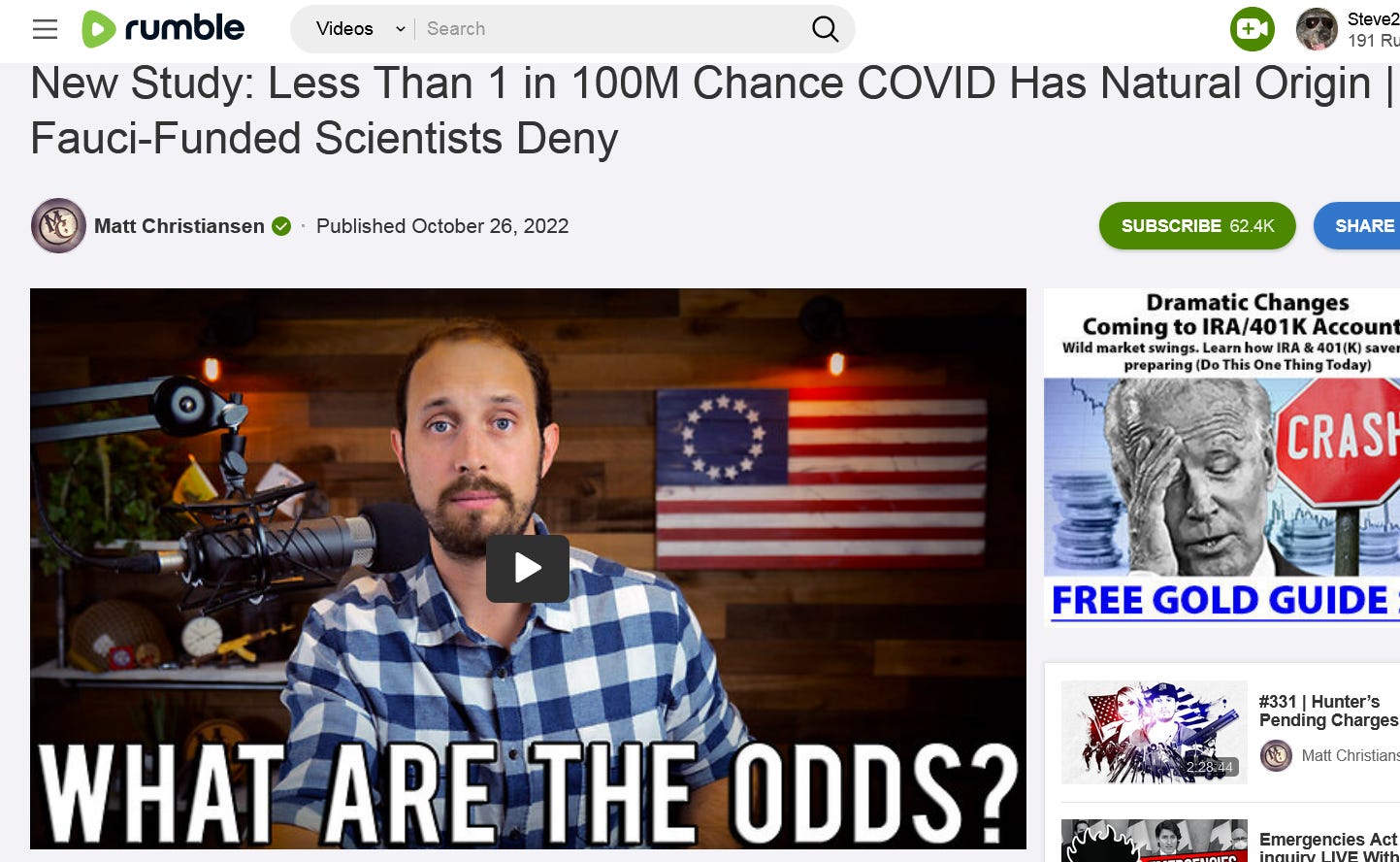 “New Study: Less Than 1 in 100M Chance COVID Has Natural Origin | Fauci-Funded Scientists Deny”