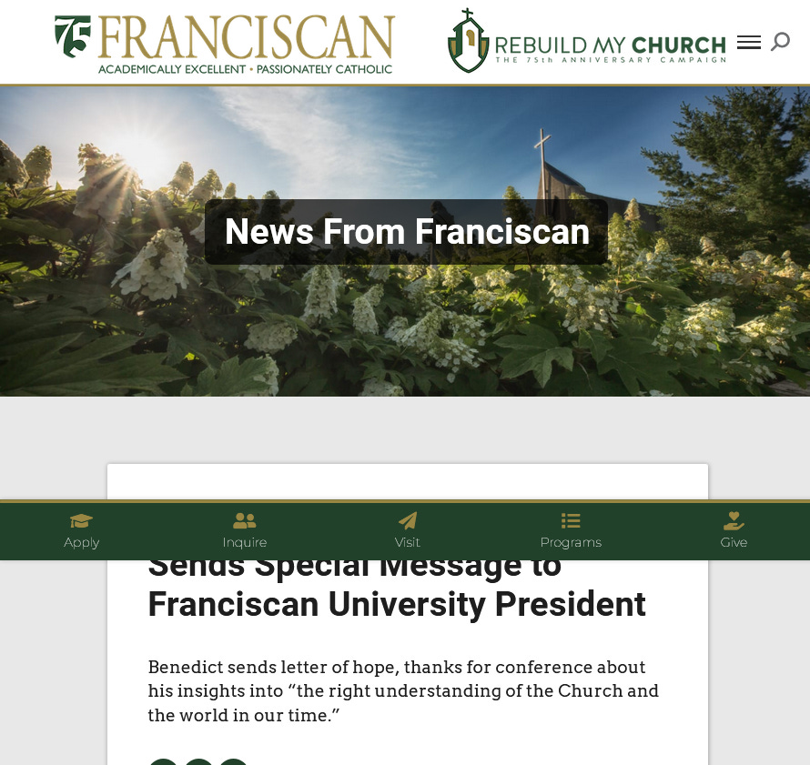 “Pope Emeritus Benedict XVI Sends Special Message to Franciscan University President”