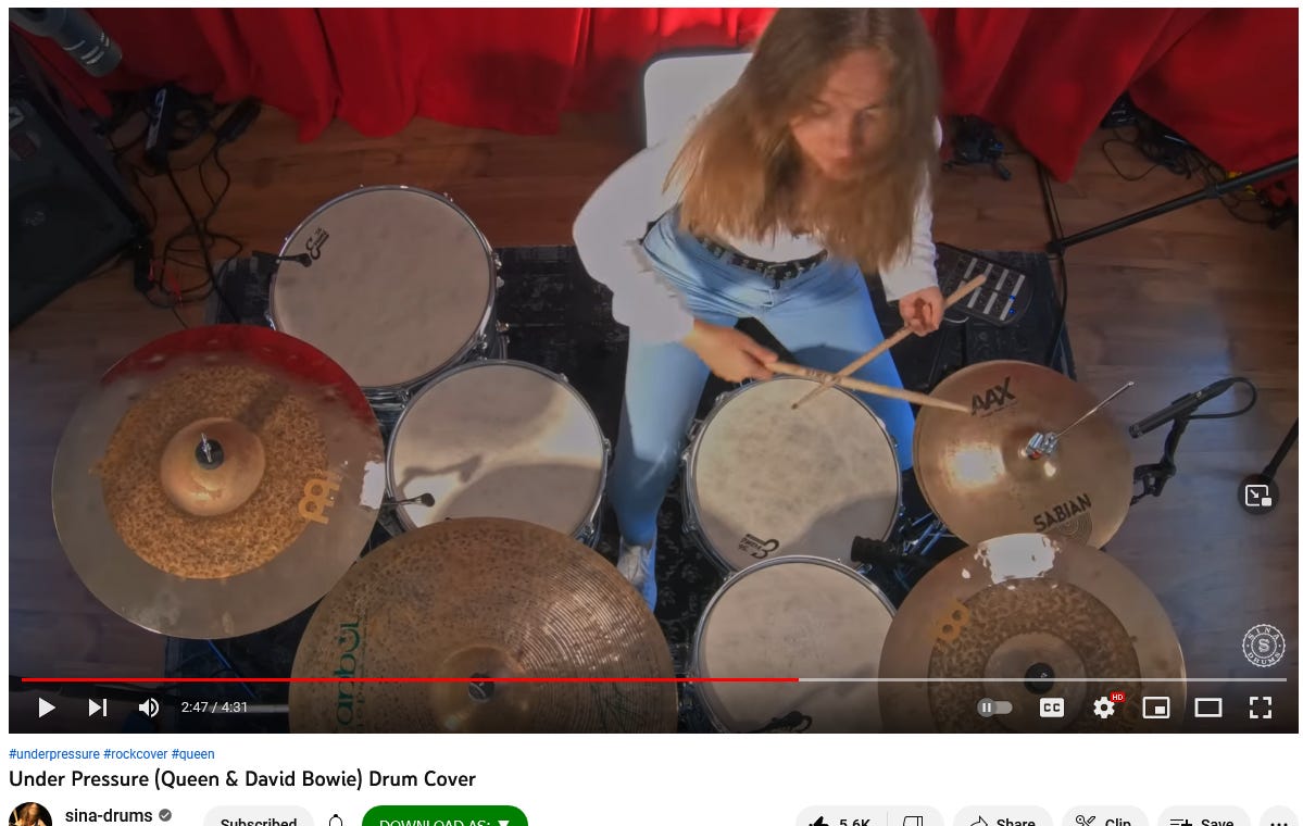 I am no good judge of technical drumming - but the song does not look challenging to her – except that short riff .. but she clearly has been working on personal presentation., ..