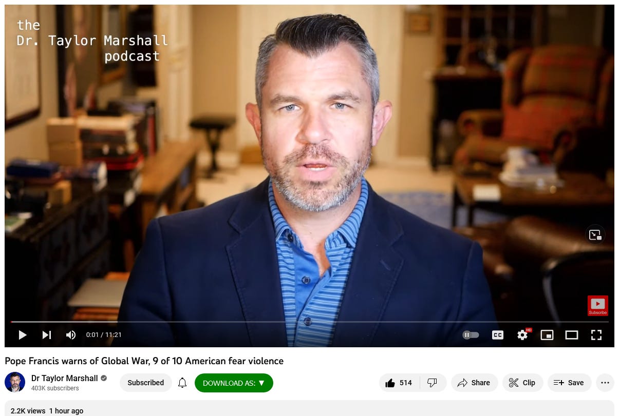 “Pope Francis warns of Global War, 9 of 10 American fear violence”