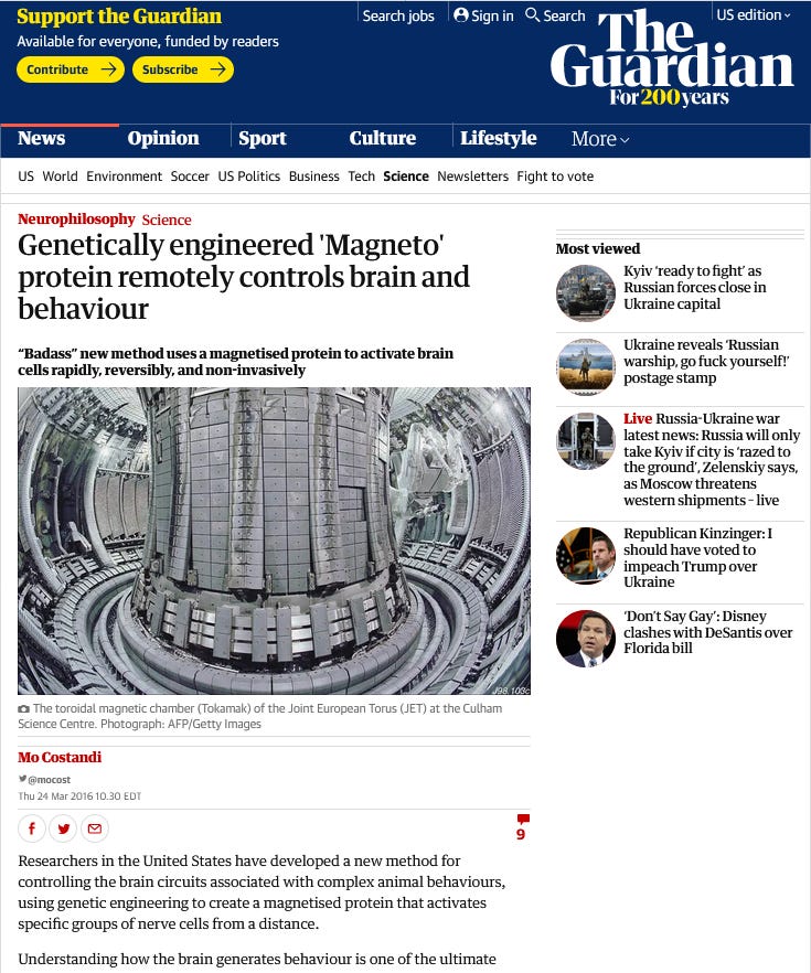 “Genetically engineered 'Magneto' protein remotely controls brain and behaviour”
