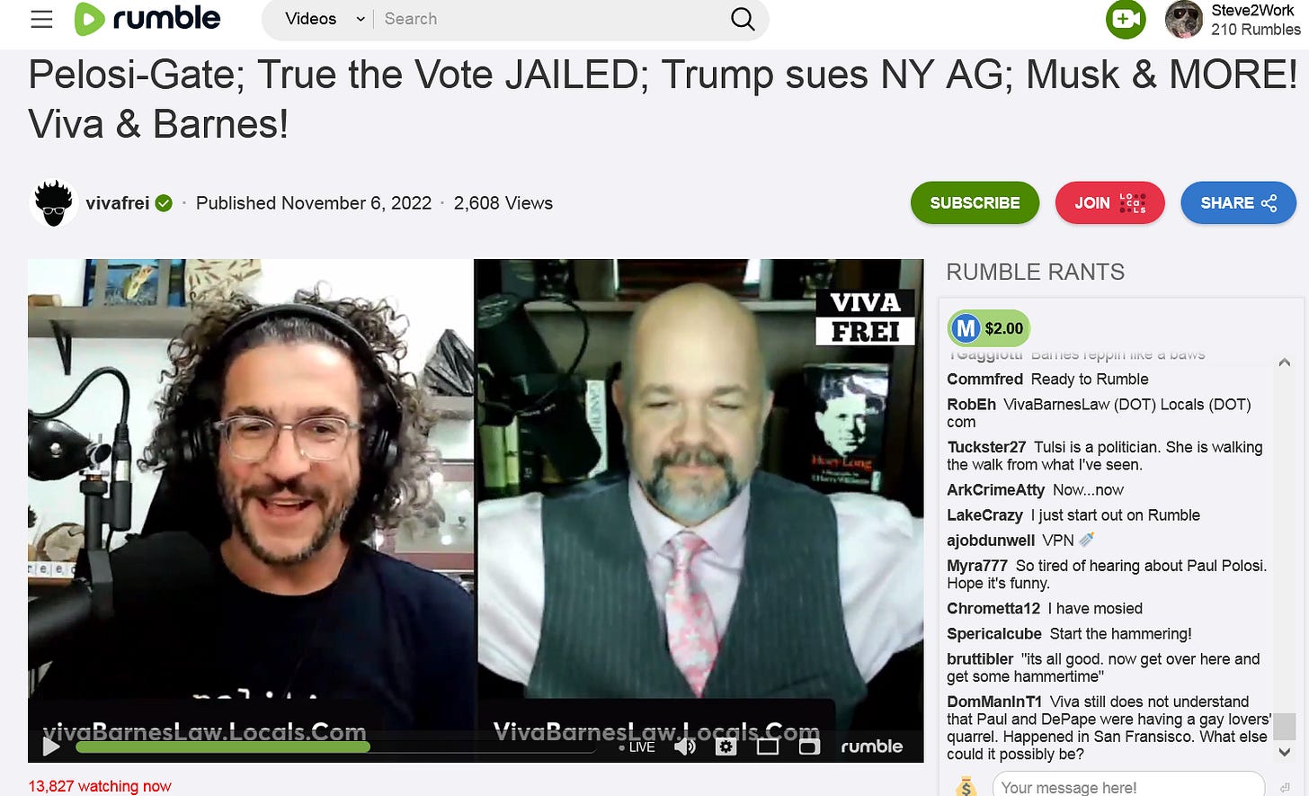 “Pelosi-Gate; True the Vote JAILED; Trump sues NY AG; Musk & MORE! Viva & Barnes!”
