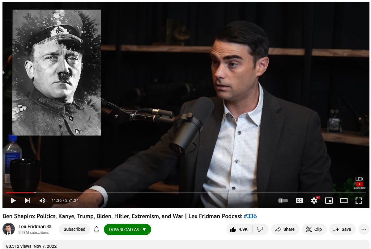 “Ben Shapiro: Politics, Kanye, Trump, Biden, Hitler, Extremism, and War | Lex Fridman Podcast #336”