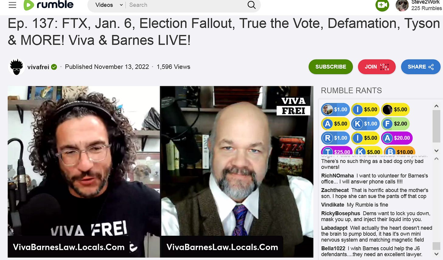“Ep. 137: FTX, Jan. 6, Election Fallout, True the Vote, Defamation, Tyson & MORE! Viva & Barnes LIVE!”