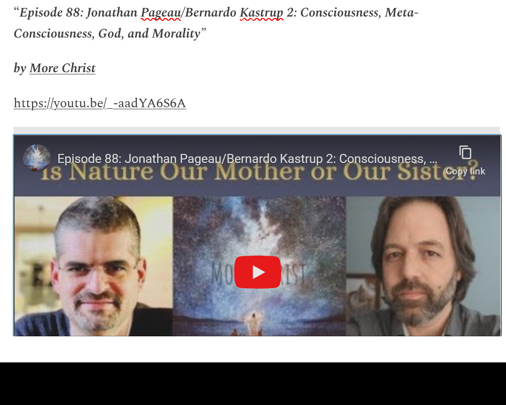 Previous discussion with Bernardo Kastrup in Post, Multiverse Journal - Index Number 1552:, June 9th, 2022, Thursday Morning, 5th Octave of Pentecost, ..