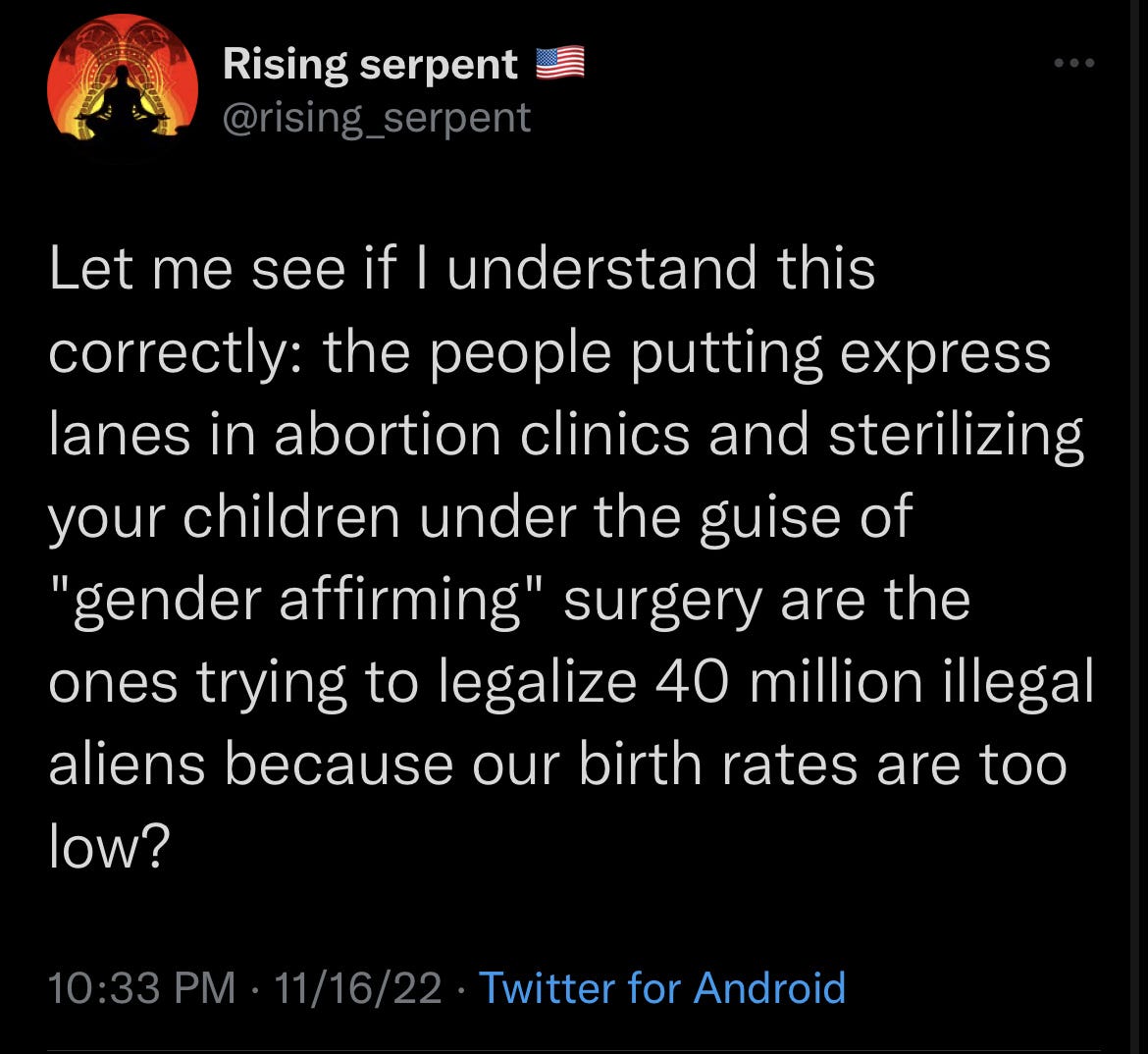 It is insanely irrational but it somehow seems okay to you – like mothers murdering babies and children mutilated on women's and Elites' whims.