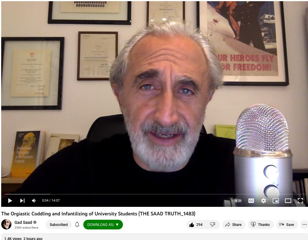 Another Gad Saad video, the retardation of our oung adults while Brain-Raping and training to Sin and Soul-Death, Hell., ..
