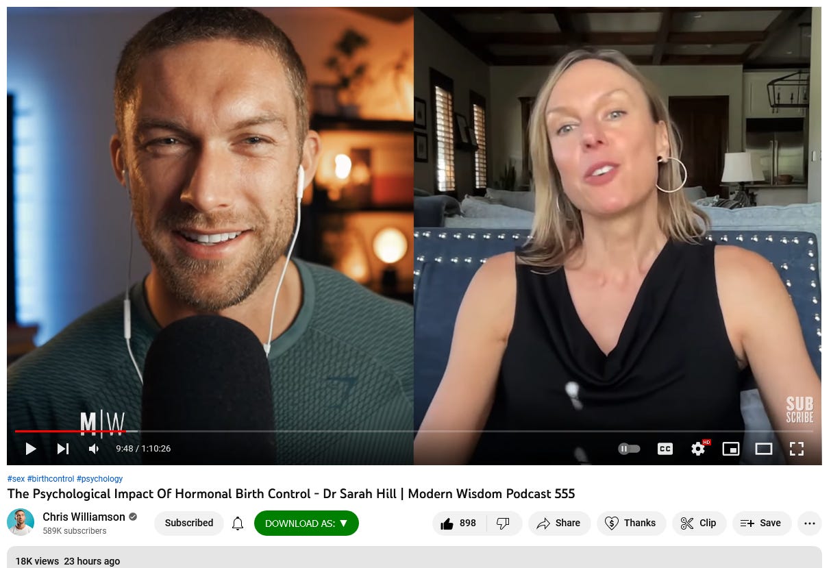 “The Psychological Impact Of Hormonal Birth Control - Dr Sarah Hill | Modern Wisdom Podcast 555”