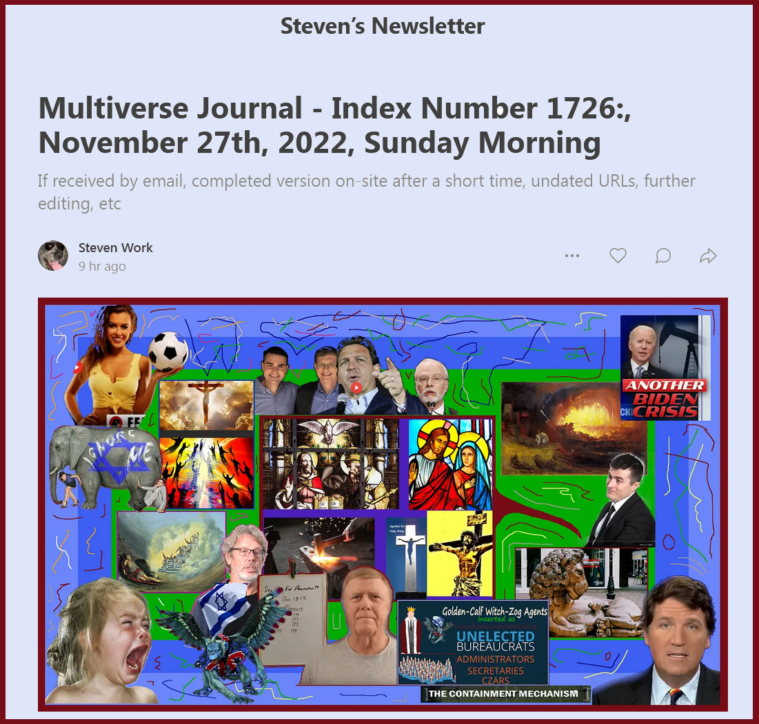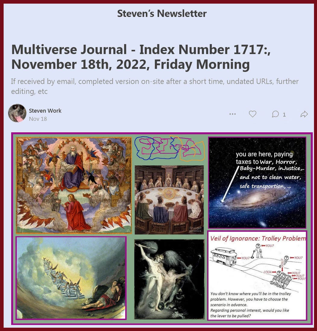 (as discussed in Post, 'Multiverse Journal - Index Number 1717:, November 18th, 2022, Friday Morning', see PostScript for URLs)