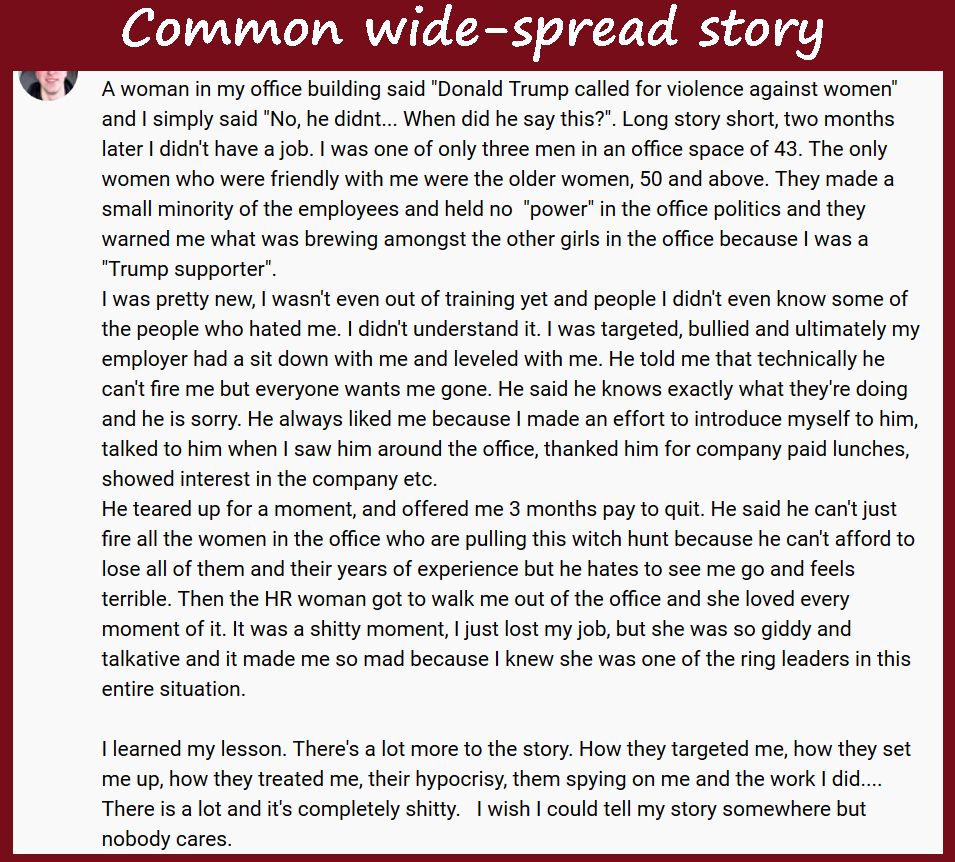 .. and every day we reminded and pretend it is Christian and good manners not to talk about it – but really Cowardous and Correct Terror and as we Free Fall as a society and the average delusional-psycho woman is suffering as men were a decade ago in this many generations slide into Hell – but they still doing better then the males and so unable to Function in Truth, Justice, and Order – or at least completely unfamiliar being part of a Septic Sicken and Sicking Putrid feted Hive Minds of Satan .. everything is relative, so because they may now be one or two steps away from homeless sleeping in feces-covered streets – they are better off then there Sick & dying bother who is or the dead on own vomit one.