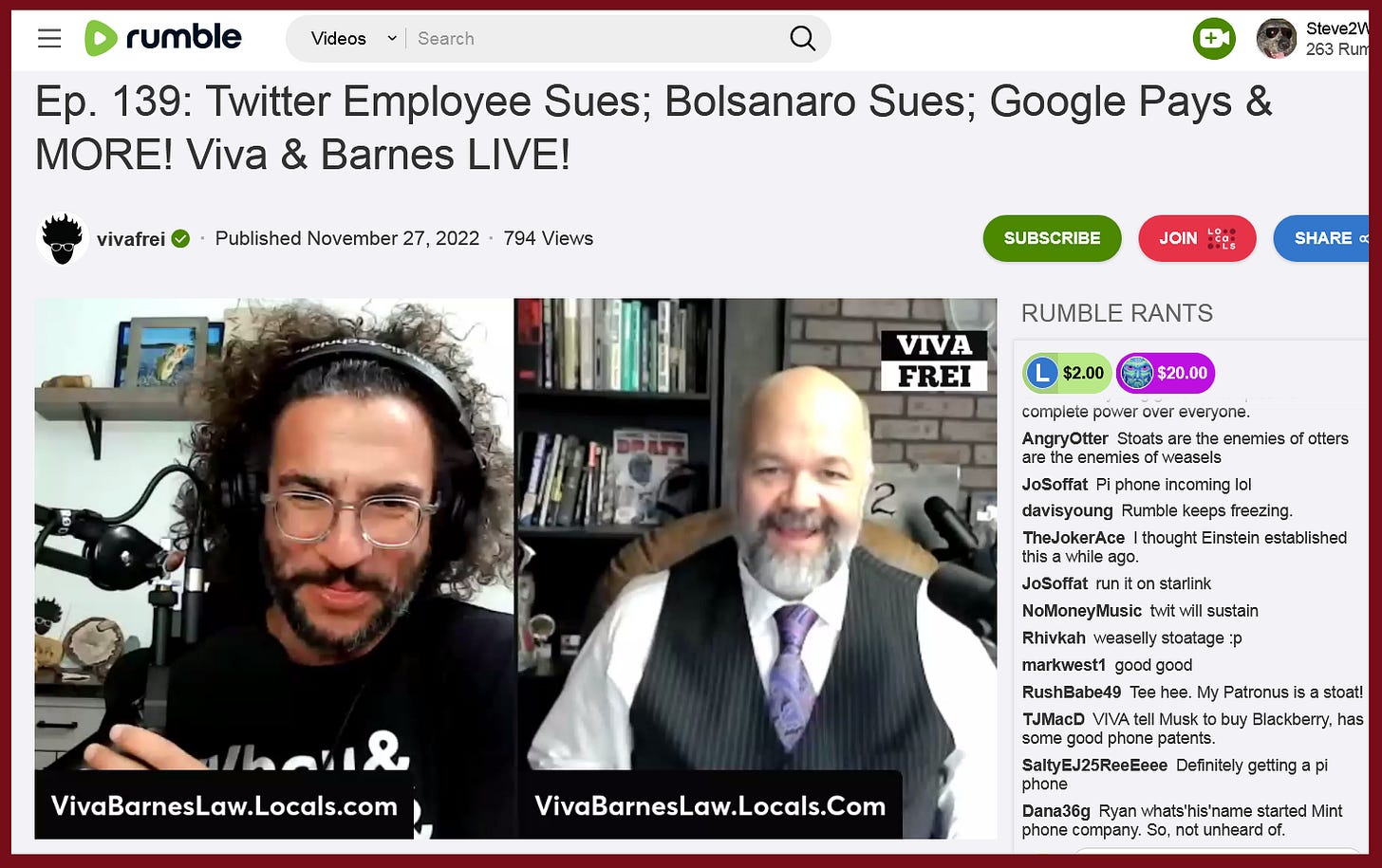 “Ep. 139: Twitter Employee Sues; Bolsanaro Sues; Google Pays & MORE! Viva & Barnes LIVE!”