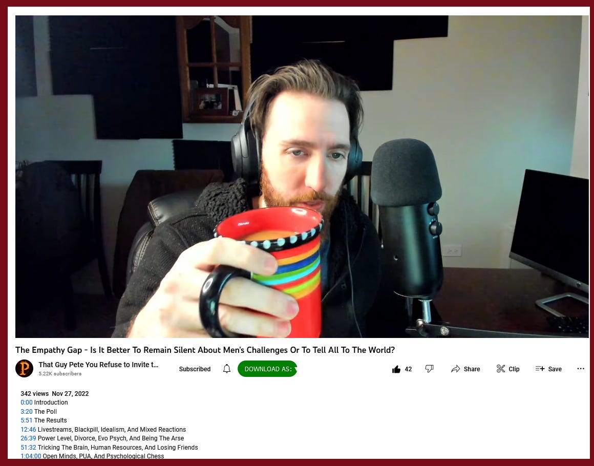 Maybe I am blind to some good reason such action is not an indication of the kind of man you should not trust to tell you the weather .. So can you think of why else he would be selectively blocking [my relevant to subject of video] comments?, ..