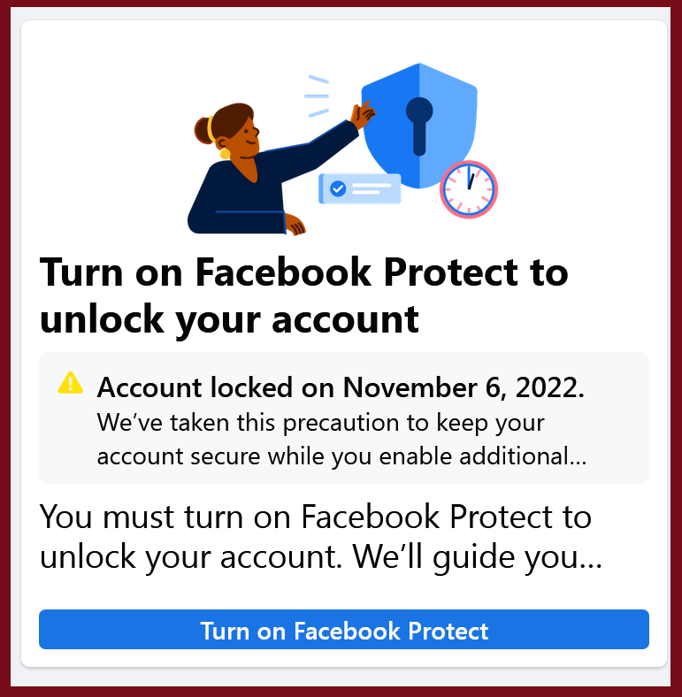 I checked my Facebook account and still locked-out until I 'Verify' from which – as I wrote about – I spend over $100 (about $125) buying the special Key(s) as one of the three methods and their application did not recognize it, and I do not have a phone nor willing to use the NSA-DeepState surveillance Web Browser that is needed to run some application that is the 3rd method.