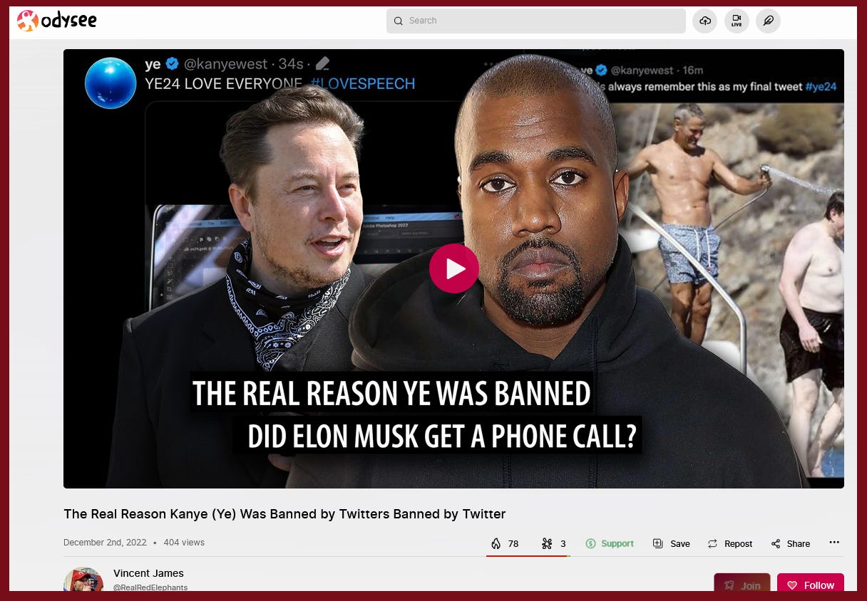 https://odysee.com/@RealRedElephants:d/The-Real-Reason-Kanye-(Yes)-Was-Banned-by-Twitter:f