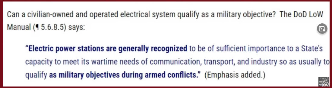 Electrical systems are important – of course – and seems like Just targets when used by the military or other warring institutions and methods.
