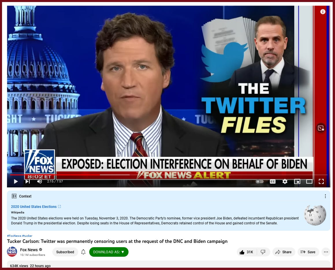 “Tucker Carlson: Twitter was permanently censoring users at the request of the DNC and Biden campaign”
