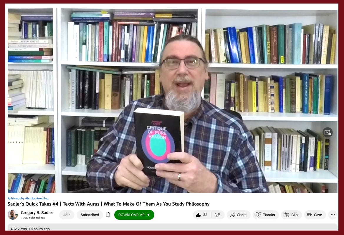 “Sadler's Quick Takes #4 | Texts With Auras | What To Make Of Them As You Study Philosophy”