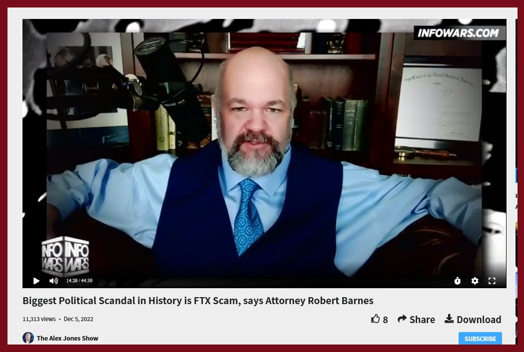 “Biggest Political Scandal in History is FTX Scam, says Attorney Robert Barnes”