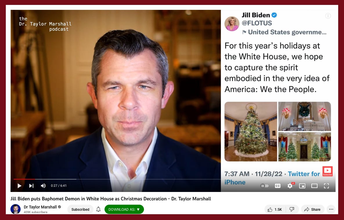 “Jill Biden puts Baphomet Demon in White House as Christmas Decoration - Dr. Taylor Marshall”