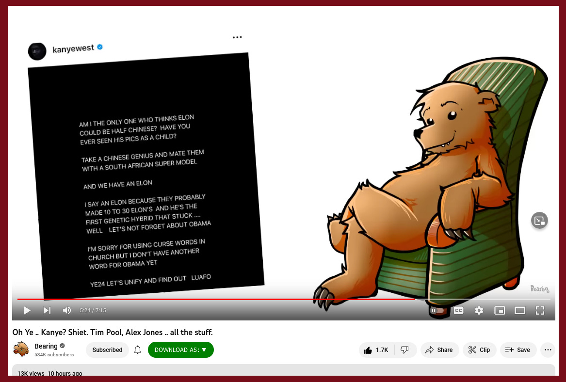 “Oh Ye .. Kanye? Shiet. Tim Pool, Alex Jones .. all the stuff.”