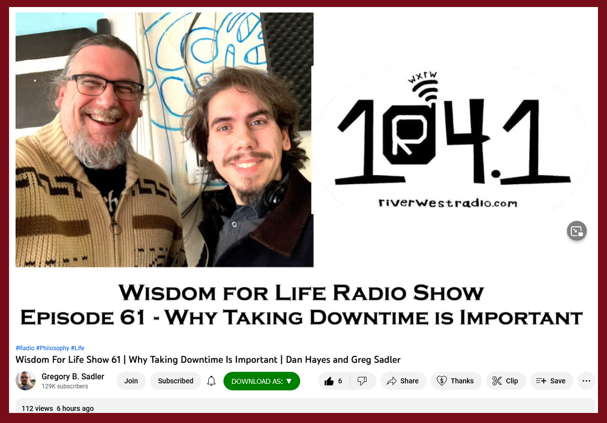 “Wisdom For Life Show 61 | Why Taking Downtime Is Important | Dan Hayes and Greg Sadler”