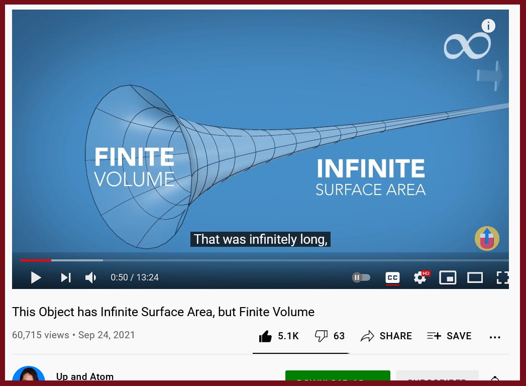 “This Object has Infinite Surface Area, but Finite Volume”