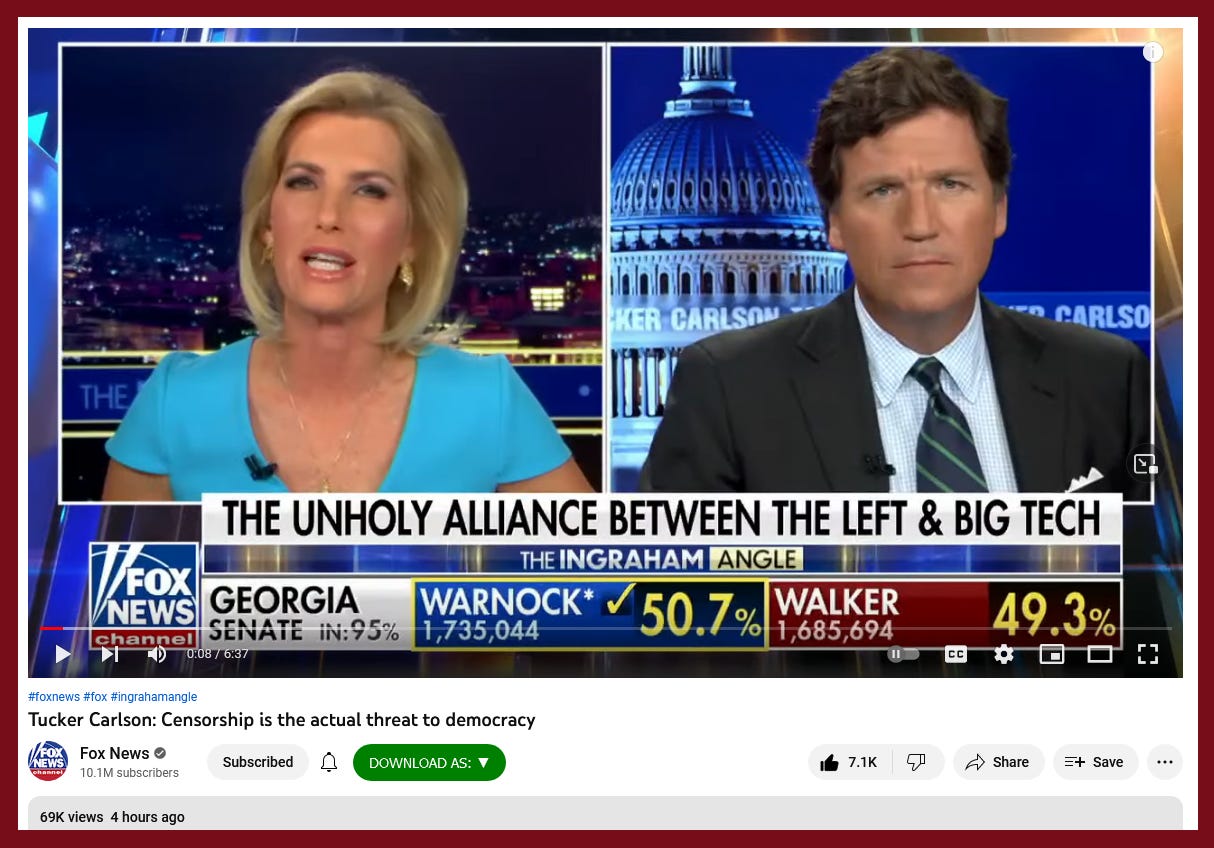 “Tucker Carlson: Censorship is the actual threat to democracy”