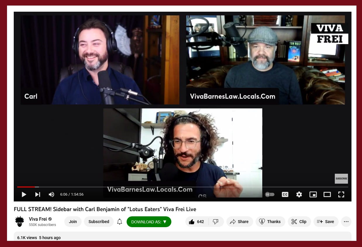 https://rumble.com/v1z3hw2-sidebar-with-carl-benjamin-of-lotus-eaters-viva-frei-live.html