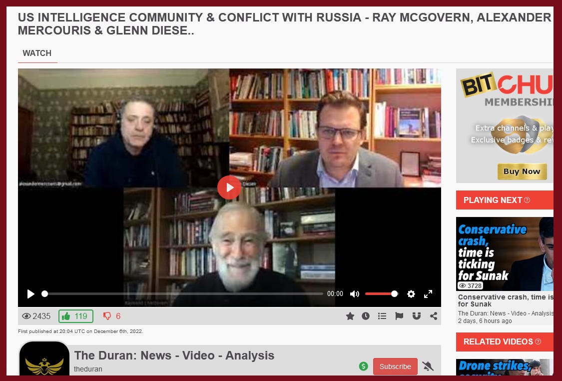 Interview discussion with Ray McGovern, ex-US Intelligence community and had a lot of good background on many topics related to Russia and interconnects nations and significant world-wide important aspects.