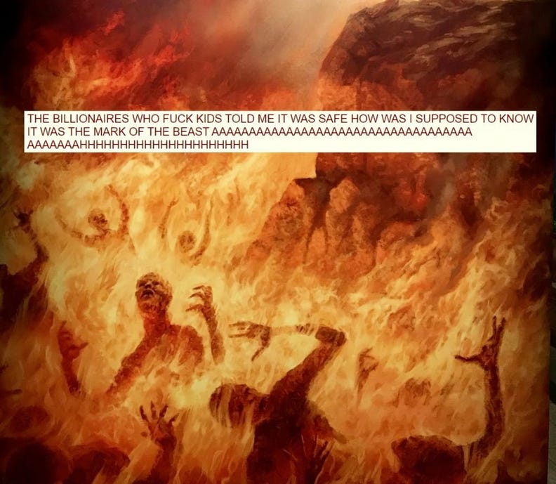 .. and for him I have imagined a background. He was successful in investments and in his exposure and interest in success – I imagine – he came in contact with some of those Golden-Calf Satanists with connections to the Witches that routinely Sacrifice Souls to Satan for power and abilities, and my friend was given an 'Opportunity' that he could have many many versions of himself with lives of prosperity – winnings in investments and all he could make from that – but One of him would have to Burn .. was he willing to Sacrifice one of himselves to have .. maybe some number like 72 versions of him successful Stock-Brokers and those lives .. and perhaps my friend said Yes, and of course the one Sacrificed is the one making the agreement – and the 72 he Suffers are having lives of Sins that money could buy, and he Burning watching .. and my friend was this lLamb's Avatar.