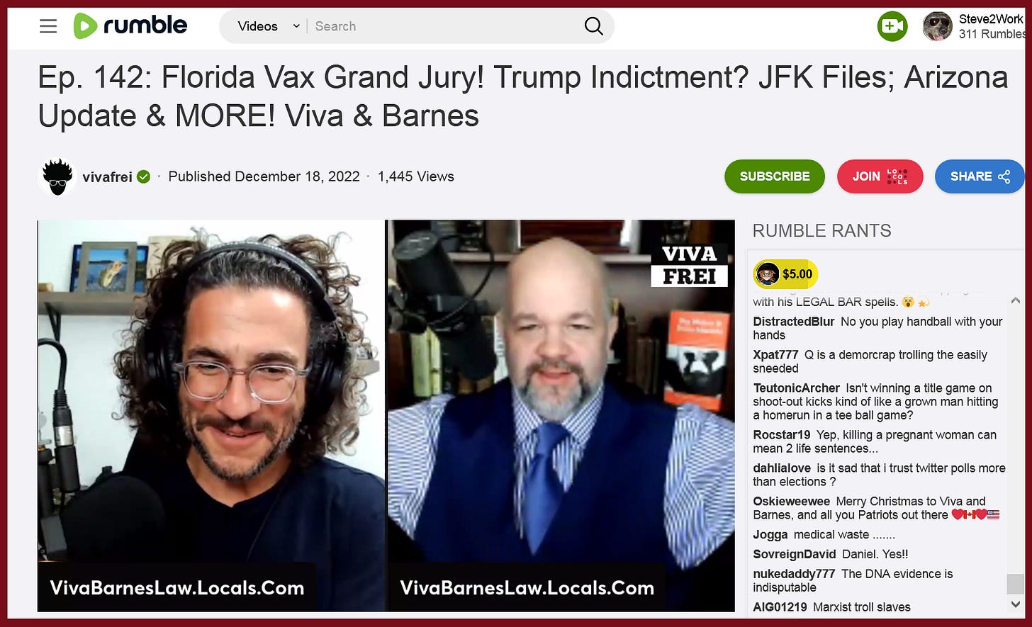 “Ep. 142: Florida Vax Grand Jury! Trump Indictment? JFK Files; Arizona Update & MORE! Viva & Barnes”