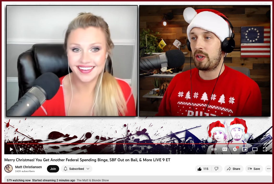 “Merry Christmas! You Get Another Federal Spending Binge, SBF Out on Bail, & More LIVE 9 ET”