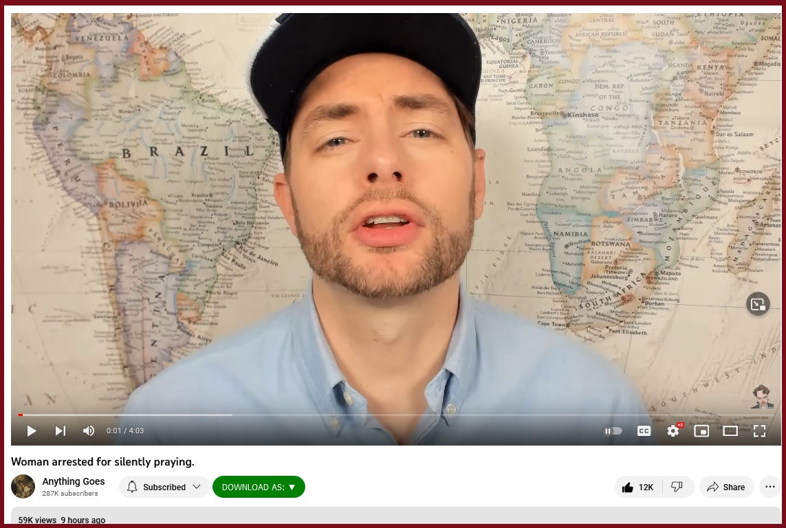 Here in this video is some of that video-clip I mentioned yesterday about the arrest of that lone praying woman., ..