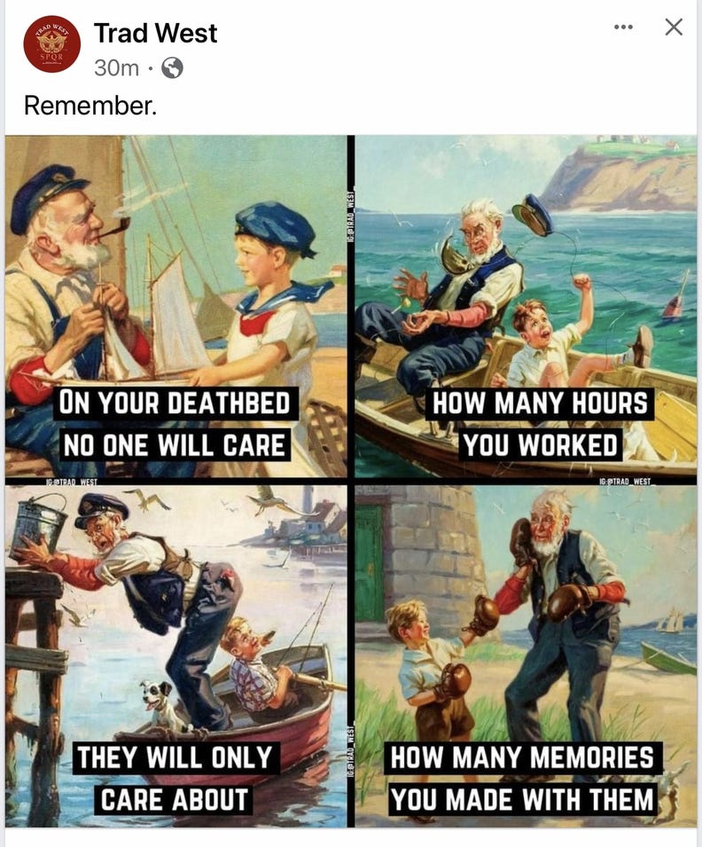 Although this likely holds sway with everyone of any age and wide life experience, this is often hits home for men who somehow survived young adult risk-taking craziness.