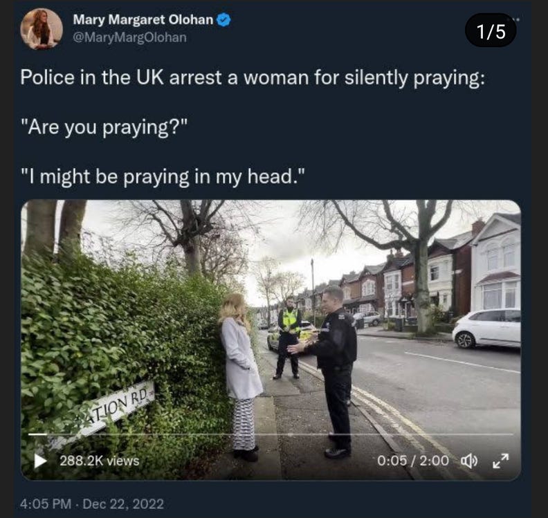 “Woman arrested for silently praying.”